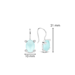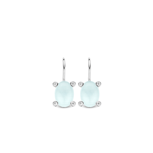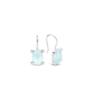 These TI SENTO ear pendants are set with summery aqua green crystals. The crystal are cabochon (smooth) cut, which brings out the pastel colour really well. The TI SENTO designers give attention to all details. That is why the four prongs on each earring are set with small Zirconia and the earring has on the reverse the TI SENTO monogram engraved. The earring a made of Rhodium plated Sterling silver. The Rhodium layer takes care of a long lasting shine and protection of the jewellery piece.