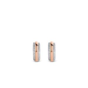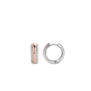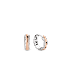 These TI SENTO rose-gold plated silver hoops 7786ZR are surrounded by white zirconia pavé. They will bring the magic to you. Take them out for an aperitivo and let their shimmering lights do the cha... read more