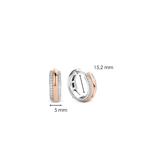 These TI SENTO rose-gold plated silver hoops 7786ZR are surrounded by white zirconia pavé. They will bring the magic to you. Take them out for an aperitivo and let their shimmering lights do the charming. Their safety-lock ensures that they are always with you