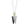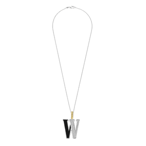 Embrace bold sophistication with this TI SENTO gold-plated silver Letter W Pendant 6840BL_W. This elegant piece features a sleek black stone inlay forming the letter "W" in striking contrast to the sparkling white cubic zirconia pavé. Crafted from lustrous 925 sterling silver, it is then coated with precious platinum to protect it and keep it luminous. Its clip ring is plated in rich yellow gold, exuding a sense of confident allure. The black stone inlay shimmers with an enigmatic depth, reminiscent of a starlit night. The letter W embodies a duality of strength and grace, reflecting your multifaceted style and the effortless confidence with which you carry it. This pendant is more than an accessory; it's a powerful expression of individuality. Wear it solo for a dramatic statement or layer it with other letters or pendants to create a bold, modern look. The pendant comes with a delicate 45cm silver chain. Crafted with care for sensitive skin, this nickel-free and hypoallergenic pendant ensures lasting comfort and quality.