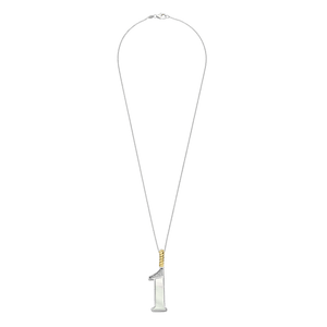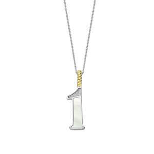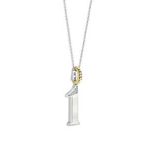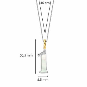 Embrace timeless elegance with this TI SENTO Number One Silver Pendant 6841MW_1. Crafted from premium 925 sterling silver and plated with platinum to ensure lasting brilliance, this pendant features a striking number one design. The number is adorned with a captivating mother-of-pearl inlay, its iridescent hues adding a touch of ethereal beauty. A shimmering pave of white cubic zirconia stones completes the design, enhancing the overall luminosity. The clip ring is plated in yellow gold, adding a touch of luxury and radiance. The number one is a powerful symbol of individuality and leadership, while mother-of-pearl is associated with purity and femininity. This pendant is perfect for the modern woman who seeks a balance of sophistication and grace. Let this pendant be the centrepiece of your jewellery collection, adding a touch of ethereal beauty to any outfit. The pendant comes with a delicate 45cm silver chain. Crafted with care for sensitive skin, this nickel-free and hypoallergenic pendant ensures lasting comfort and quality.