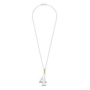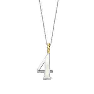 Embrace timeless elegance with this TI SENTO Number Four Silver Pendant 6841MW_4. Crafted from premium 925 sterling silver and plated with platinum to ensure lasting brilliance, this pendant features a striking number four design. The number is adorned with a captivating mother-of-pearl inlay, its iridescent hues evoking the magic of the ocean. A shimmering pave of white cubic zirconia stones completes the design, enhancing the overall luminosity. The clip ring is plated in yellow gold, exuding luxury and radiance. The number four symbolises stability, foundation, and harmony. It represents the importance of creating a solid base from which to build and grow. Mother-of-pearl, a symbol of purity and femininity, lends a touch of ethereal beauty to this pendant. This piece is perfect for the modern woman who values both strength and sophistication. Let this pendant be the cornerstone of your refined aesthetic. Wear it solo for a classic statement or layered with other pieces for a curated look. The pendant comes with a delicate 45cm silver chain. Crafted with care for sensitive skin, this nickel-free and hypoallergenic pendant ensures lasting comfort and quality.