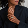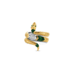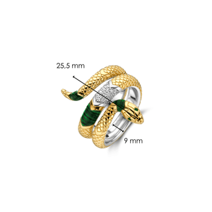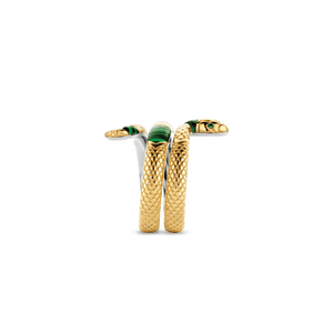 This gold-plated TI SENTO silver snake ring 12203EM is handset with emerald green stones and white zirconia. It has eyes of emerald too! An opulent and iconic showpiece.