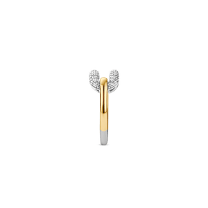 This TI SENTO gold-plated silver ring 12228ZY has an open oval shape handset with a pave of shimmering white zirconia stones. The ring is made of 925 sterling silver. This classy and distinctive des... read more