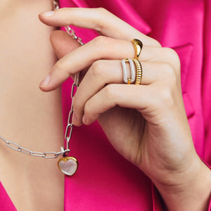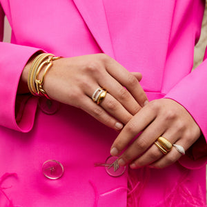 This TI SENTO gold-plated silver ring 12228ZY has an open oval shape handset with a pave of shimmering white zirconia stones. The ring is made of 925 sterling silver. This classy and distinctive design is a real eye catcher.